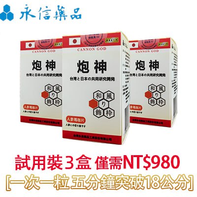 15分鐘前【活動最後1天!可免費領取一瓶!】只需一粒,效果立現--- 脱胎换茎,强悍重生!永信藥業攜手アステラス製藥株式會共同合製 “炮神”登場 衛福部核可服用、全球男人瘋搶! - 共3瓶 二盒+試用裝一瓶【限量50组】【炮神】,僅需 NT$980 --- 一次一粒,五分鐘突破18公分!