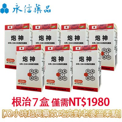半小時前【活動最後1天!可免費領取一瓶!】只需一粒,效果立現--- 脱胎换茎,强悍重生!永信藥業攜手アステラス製藥株式會共同合製 “炮神”登場 衛福部核可服用、全球男人瘋搶! - 共7瓶 六盒+試用裝一瓶【僅剩最後50組】【炮神】 僅需 NT$1980--- 72小時超長藥效,吃完記得對老婆溫柔點!